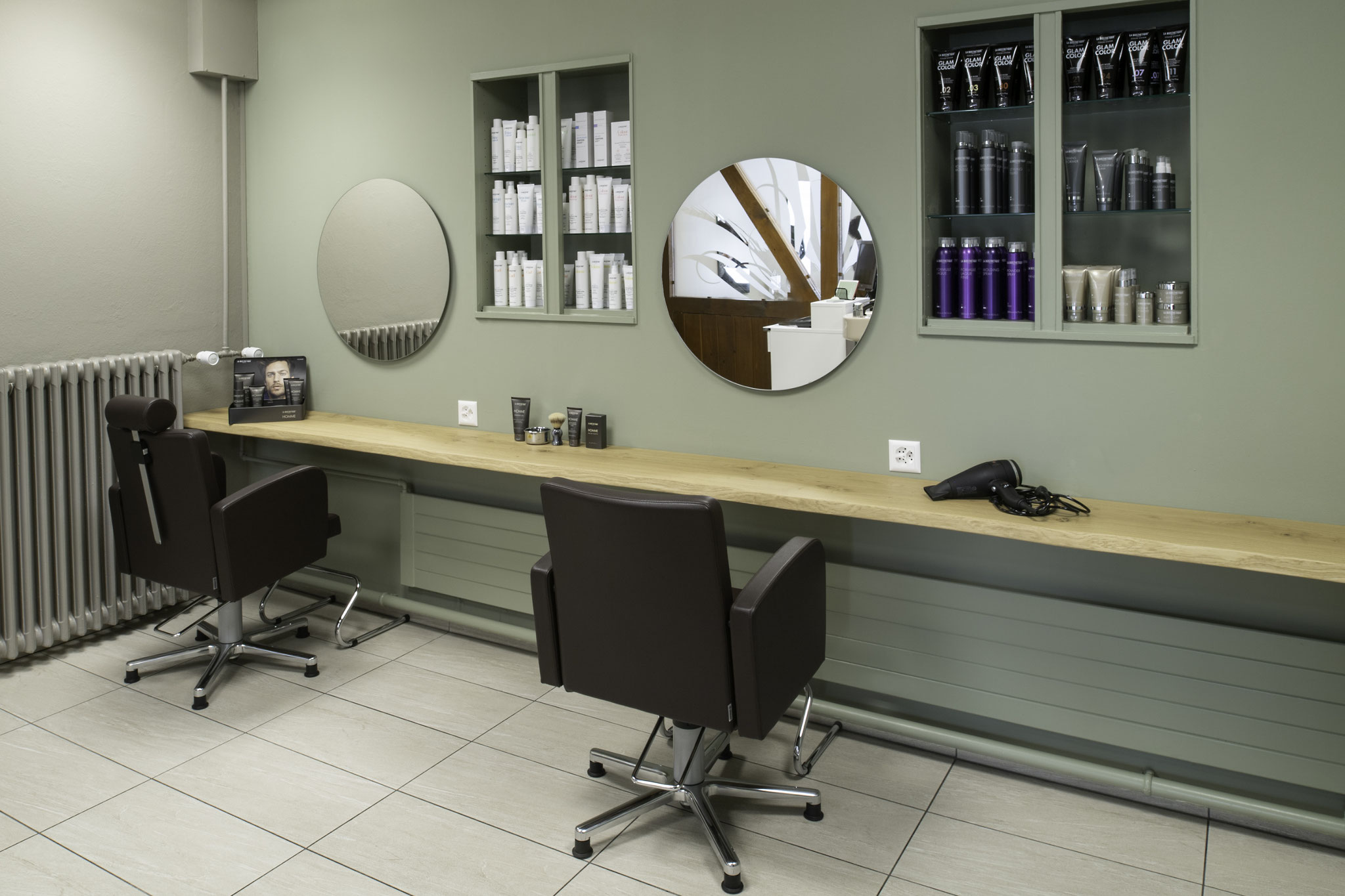 Mitten in Steffisburg, in einem Gebäude aus den 70er Jahren wird seit fünfzig Jahren das wunderschöne Handwerk des Coiffeurs betrieben. Eine geschichtliche Besonderheit ist, dass im Parterre dieses altehrwürdigen Gebäudes, seit je her, zwei autonom geführten Salons betrieben werden. Eine anregende und inspirierende Begebenheit.